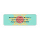 Stylish return address label done in light turquoise, with graphics of a pale yellow and coral tribal sun design. Black text is ready to personalise for special occasions or every day use.