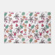 Graphic of red green yellow tropical beach summer vacation elements on white background, seamless repeat pattern