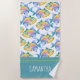 Newly released. My colourful tropical fish beach towel features a replica of my original hand painted watercolor queen triggerfish in a colourful school of fish. Personalise with your name in white over a turquoise blue background. It matches my tropical fish collection and is perfect for destination weddings, girl's weekend getaways and as a fun gift. To see more coastal art by Victoria Grigaliunas visit www.zazzle.com/dotellabelle