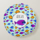 Colourful Tropical Fish Pattern in Blue Sea Round Cushion