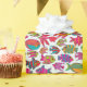 The cute cartoon style tropical fish on this wrapping paper have pink, purple, orange, green, coral, and turquoise colours. Background is a blue on white swirled pattern. Suitable for birthdays or any special occasion!