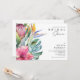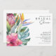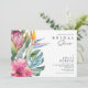 This colourful tropical floral bridal shower invitation is perfect for your modern boho destination green, purple, peach bridal shower. Design features an elegant bouquet of classic beach watercolor greenery and flowers, including sage green eucalyptus, mauve and red protea, blush pink hibiscus, orange and blue bird of paradise, and dark green palm leaf. The design is ideal for a simple, creative, unique travel wedding for spring, summer, fall, or winter! Please find other matching or coordinating wedding stationery in the rest of the collection.