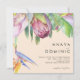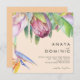 This colourful tropical floral | peach square wedding invitation is perfect for your modern boho destination, green, purple, peach wedding. Design features an elegant bouquet of classic beach watercolor greenery and flowers that may include sage green eucalyptus, mauve and red protea, blush pink hibiscus, orange and blue bird of paradise, and dark green palm leaf. The design is ideal for a simple, creative, unique travel wedding for spring, summer, fall, or winter! Please find other matching or coordinating wedding stationery in the rest of the collection.