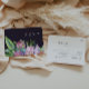 This colourful tropical floral | purple wedding RSVP postcard is perfect for your modern boho destination, green, purple, peach wedding. Design features an elegant bouquet of classic beach watercolor greenery and flowers that may include sage green eucalyptus, mauve and red protea, blush pink hibiscus, orange and blue bird of paradise, and dark green palm leaf. The design is ideal for a simple, creative, unique travel wedding for spring, summer, fall, or winter! Please find other matching or coordinating wedding stationery in the rest of the collection.