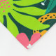 Colourful tropical jungle with flowers and animals in a seamless pattern.