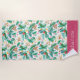 Get ready for summer with this colourful patterned jungle animal design in bright tropical shades of green, pink, and yellow. Island chic design features a repeating pattern of monstera leaves and green watercolor foliage with monkeys, sloths, parrots, and hummingbirds adorned with pink and yellow tropical flowers. Personalise with a name along the bottom.