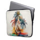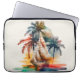 Tropical electronics bag, laptop cover, with palm trees and sailboat.