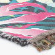 A quality printed throw has its advantages. This is a much finer weave throw than its loopier cousins, and though lighter, it is worth the investment for custom room accessorizing. The back is much prettier than the typical brown, and the fringe on the long sides very vivid, the selvage nicely done. Before photographing, I washed the throw in cold water, delicate, with a thicker woven throw the same size. On tumble dry low, this throw was dry in half the time as the other. This is a very practical quality if you use throws for furniture covers or to wrap up in frequently. The sleekness of the fabric makes it a great layer for accenting or protecting without the feeling of sitting on too much stuff. Perfect for napping or when you feel a light chill coming on. The color printing is beautiful and on this fabric, matched the design and color of my Photoshop image. This is an advantage for blending room fabrics and colors. The fringe on the short sides prints the colors from the design image and therefore varies from the side fringe. I streaked a white fractal line through the plaid pattern to give the illusion of weaving. This printed as crisp as an illusory thread, and put some white in the short side fringe, showing another advantage of print vs loomed- for artistic purposes, line lines, detail, and color integrity can be planned and preserved. My loomed throws have color limitations and more of a needlepoint texture. Print throws reproduce an exact image. The throw felt a little stiff straight out of the package, but this went away in the first delicate wash. Of course I searched the wash water for ink or bleeding and there was none.