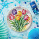 An elegant design with Colourful tulips, greenery and gold frame on the edge!