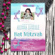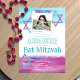 Colourful Turquoise, Hot Pink Glitter Bat Mitzvah Invitation
