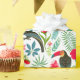 Colourful tropical flowers and green leaves with Tuscan tropical birds in a seamless pattern.