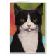 Modern digital painting of a cute, black and white Tuxedo cat with a colourful background. Painted in Photoshop CS3.