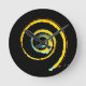 Wall clock with image an abstract image of a yellow twirl on black, on the face of the clock. Customisable.