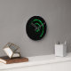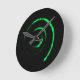Wall clock with image an abstract image of a green twirl on black, on the face of the clock. Customisable.
