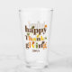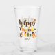 Colourful typography and leaves Thanksgiving fall glass. The text "Happy Thanksgiving" in colourful typography and autumn leaves in brown, orange, olive green and yellow along with customisable date adorn this Thanksgiving glass.