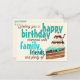 The horizontal postcard cover offers fun and colourful birthday wishes with cake and ice cream on the front and the back offers room for a handwritten note with template return address and a repeating "Happy Birthday!" template text vertical divider. Personalise, delete or edit using the design tool to select a font style, size and colour you prefer. If you don't want to send it openly through the mail with your message you can add an envelope to the order.