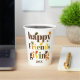 Celebrate the spirit of Friendsgiving with this vibrant and eye-catching paper cup. The focal point of this design is the text “Happy Friendsgiving,” in warm fall colours of brown, orange, olive green, and yellow which is elegantly displayed in a lively and playful font. The cup is further adorned with intricately illustrated leaves in coordinating autumnal shades, creating a visually appealing and festive look. Use this paper cup to serve your favourite beverages at your Friendsgiving get-together and add a touch of warmth and joy to the occasion.