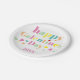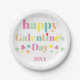Colourful bold typography Happy Galentines Day paper plate. The text "Happy Galentine's Day" in colourful typography, customisable date and hearts in pink, teal, mint green, yellow and peach are the elements of this pepar plate. A great gift for a friend for Valentines Day.