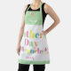 Colourful typography and hearts, mint green border Mother's Day Brunch all-over print Apron. It showcases the text "Mother's Day Brunch" in colourful typography, customisable date and hearts. Mint green bands with scalloped edges are placed on the upper and bottom of the apron with personalised name. A cool gift for any mum.
