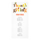 Colourful bold typography Thanksgiving fall colour menu card for Thanksgiving dinner. It features the text "Thanksgiving" in colourful typography and leaves in brown, orange, olive green and yellow.
