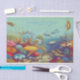 Colourful under the sea scene of coral, schools of fish, jellyfish, shrimp and a shark