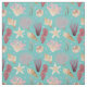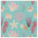 Colourful watercolor illustrations of seashells, coral and underwater plant life create a pattern on aqua background
