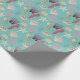 Colourful watercolor illustrations of seashells and underwater plant life create a pattern on aqua background
