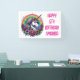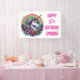 Colourful rainbow unicorn and flowers with a rainbow background personalised girl's birthday party banner.