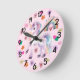 Colourful Unicorn Rainbow and Flowers Nursery Round Clock