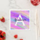 Girly and glam napkin with a colourful unicorn rainbow background, and gold glitter sparkles confetti. Personalise with your custom name in black and your monogram initial in white. You can change the text colour and font style and size using the customise option.
