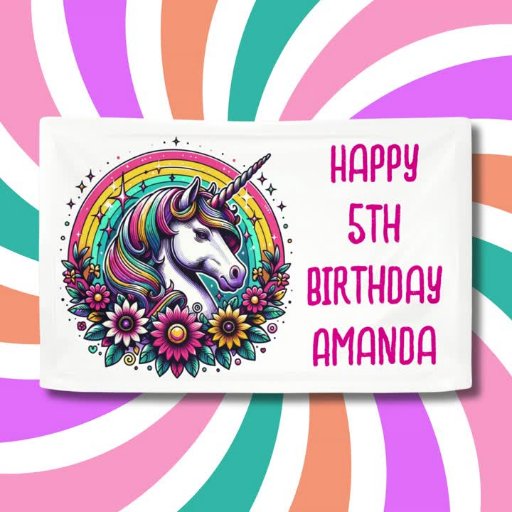 Birthday and colourful rainbow unicorn and flowers little girl's personalised birthday party invitations. A pretty unicorn surrounded by flowers and a rainbow. Cute for any girl who loves unicorns and flowers! Add your little girl's picture to the heart in the personalised area.