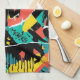 Colourful urban graffiti patchwork pattern kitchen towel featuring bold abstract blocks, expressive brush strokes, scribbles, stars, and mixed-media textures in bright blue, yellow, pink, orange, and black. Energetic and edgy with a modern street art aesthetic, this seamless design is ideal for graffiti art lovers, maximalist style fans, creative teens, and contemporary art enthusiasts.