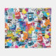 Colourful urban graffiti patchwork pattern blanket featuring bold abstract blocks, expressive brush strokes, scribbles, stars, and mixed-media textures in bright blue, yellow, pink, orange, and black. Energetic and edgy with a modern street art aesthetic, this seamless design is ideal for graffiti art lovers, maximalist style fans, creative teens, and contemporary art enthusiasts.