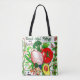 Colourful, bold and bright greens and reds fresh vegetables and herbs art by Patricia Villa. Various hand drawn vegetables and herbs on tote bag. Fun bright bag to take shopping.