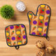 Brighten up your cooking with this fun vegetable pattern oven mitt and pot holder set. Perfect for everyday baking, cooking, or as a unique kitchen gift for food lovers. Durable, heat resistant, and stylish. Personalised with initials.