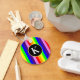 Personalise this cheerful classic design with your custom initial or monogram. Svelte skinny stripes in fab rainbow colours, multi-coloured vertical stripes and elegant black circle with pale yellow border and white letter. Original GLBT skinny stripes colourful Pride design by M Sylvia Chaume. Happy blessings!