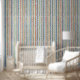 Colourful Vertical Stripe Pattern Green Yellow Blu Wallpaper