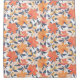 This colourful floral patterned shower curtain features a vibrant orange and yellow botanical print with blue leaves, and coordinates with the pretty floral decor including pillowcases, duvet cover, curtains and area rug found in this shop.