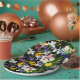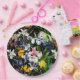 Colourful Victorian Iris Flowers on Black Pattern Paper Plate