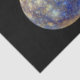 This design features an image of the planet Mercury. The colours seen are not what Mercury would look like to the human eye, but the colours are intended to enhance the chemical, mineralogical and physical differences between the various rocks that make up Mercury's surface. The data is based on imagery from NASA's MESSENGER space probe, which orbited the planet Mercury between 2011 and 2015. Mercury is the smallest and innermost planet in our Solar System; its full orbit around the Sun takes only around 88 Earth days.