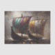 Colourful Viking Sails Decoupage by Decoupage_Boutique showcases two proud Norse longships sailing side by side beneath vibrant banners. One glows with teal and violet stripes, the other with golden hues, both straining in the storm winds as arrows streak through the sky. The scene combines beauty and menace, capturing the Viking spirit of courage, rivalry, and unyielding drive towards destiny.