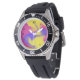 A watch with a colourful background.