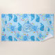 Colourful Water Splash Blue Whale Monogram Pattern Beach Towel