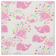 Cute pink whales pattern with colourful water splash oh girl with drops in different colours.