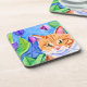 Colourful Watercolor Art | Orange Cat and Flowers Coaster