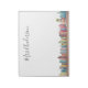 Notepad featuring colourful watercolor books lined up with personalised teacher name.