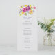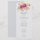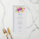 This wedding menu card features a floral watercolor bouquet image in colours of gold, violet pink, green, and tangerine. Your custom text is in grey and matching blue at the middle. The watercolor floral image and text are placed on a lighter soft grey background, which complements the bright colours in the flowers. The back of the card is the same grey colour. This menu card is versatile enough to be used for a variety of events. It has matching wedding invitations and other wedding products in our store.