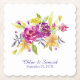These wedding paper coasters feature a gorgeous watercolor floral bouquet at the top of this colourful and personalised wedding paper coaster. The flowers are in colours of violet, purple, gold, and pink, with green and blue green leaves. Below is your custom text in matching blue. Classy, and appropriate for weddings in any season, but especially spring, summer, and fall. This design is versatile enough to be used for many events other than weddings. Be sure to see the entire line of matching wedding products in our store.
