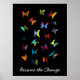 Cute butterflies in vivid colours hand drawn watercolor art. Rainbow cute colours. Become the change inspirational quote. Vibrant beautiful butterflies.