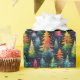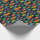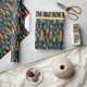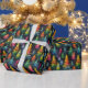 Wrapping paper featuring a pattern of colourful watercolor Christmas trees.